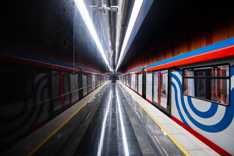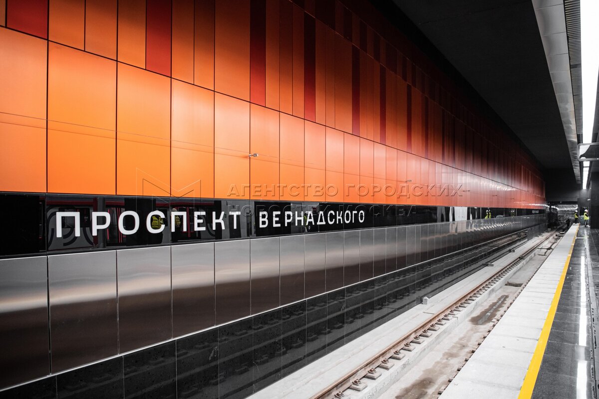 - Описание: Технический пуск юго-западного участка Большой кольцевой линии метро от станции «Давыдково» до станции «Проспект Вернадского». Станция метро «Проспект Вернадского». Фото: Максим Мишин, пресс-служба мэра и правительства столицы.