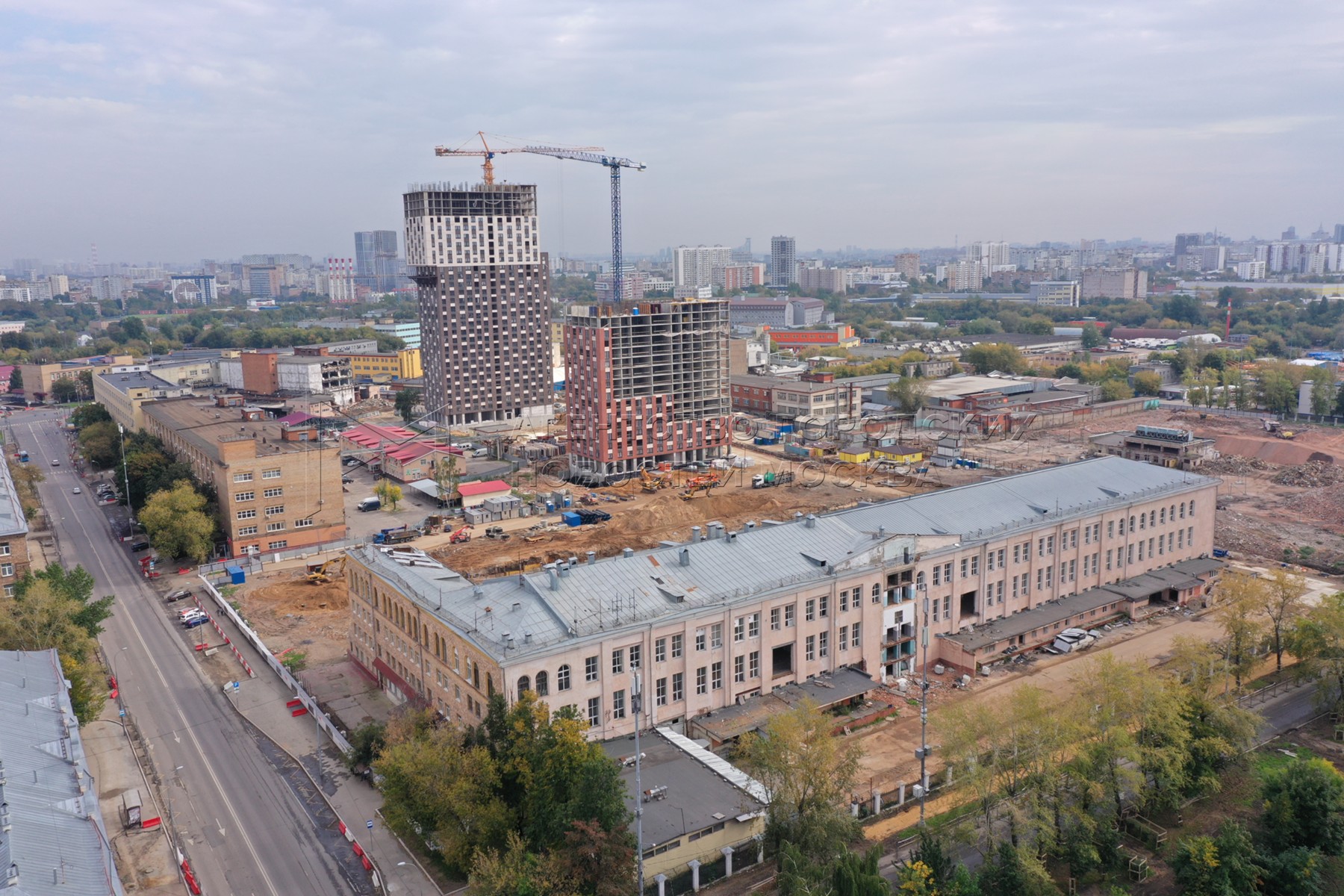 Вид с квадрокоптера на застройку территории бывшего Останкинского молочного комби...