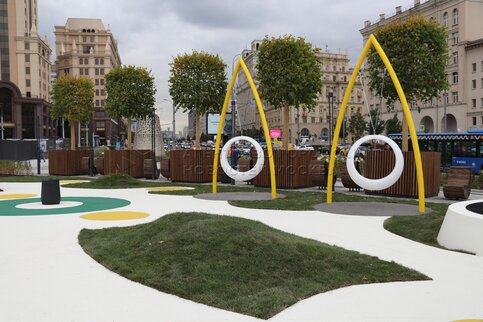 Центральная часть нового парка на Павелецкой площади после благоустройства.