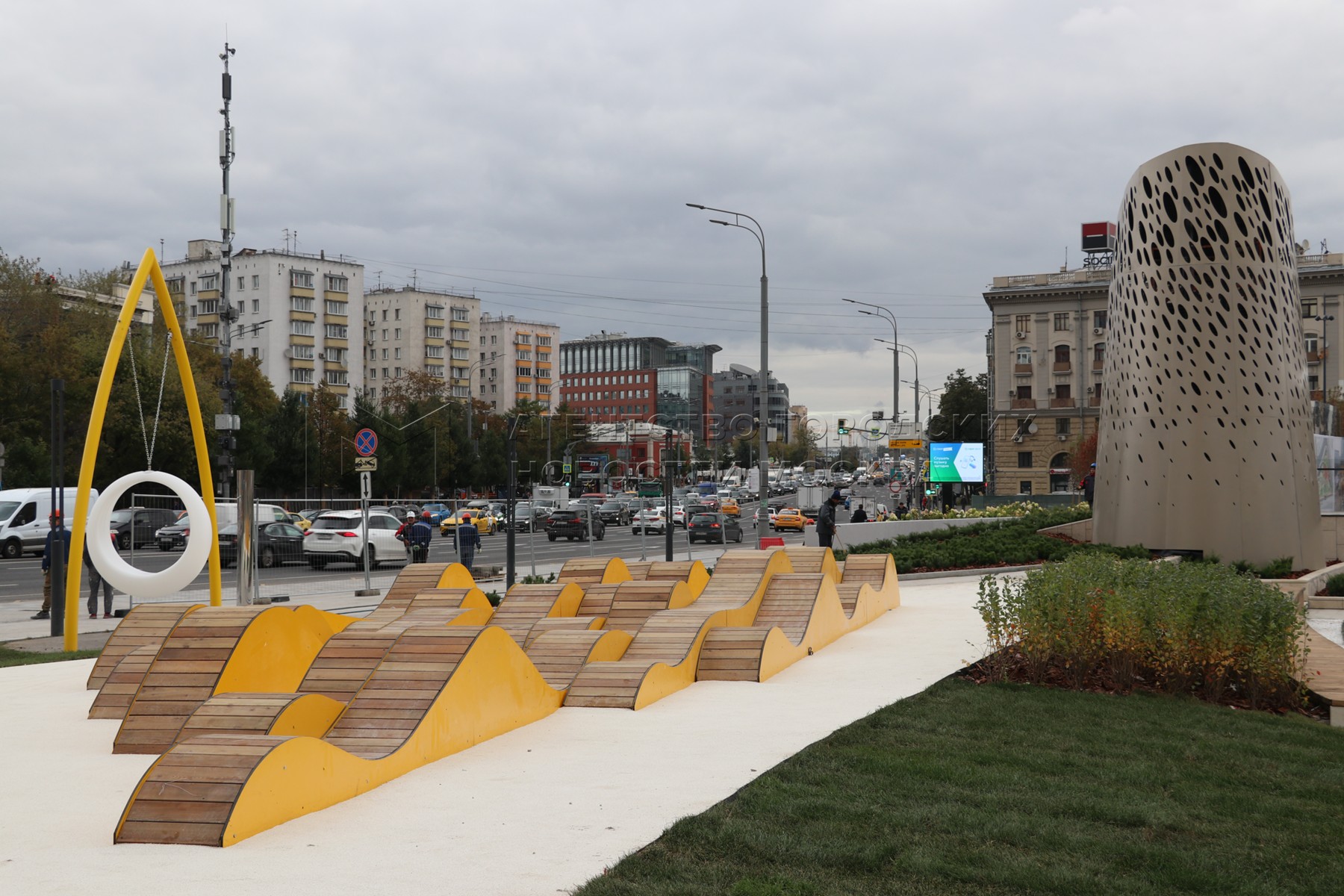 • Заголовок: Центральная часть нового парка на Павелецкой площади после благоустройства