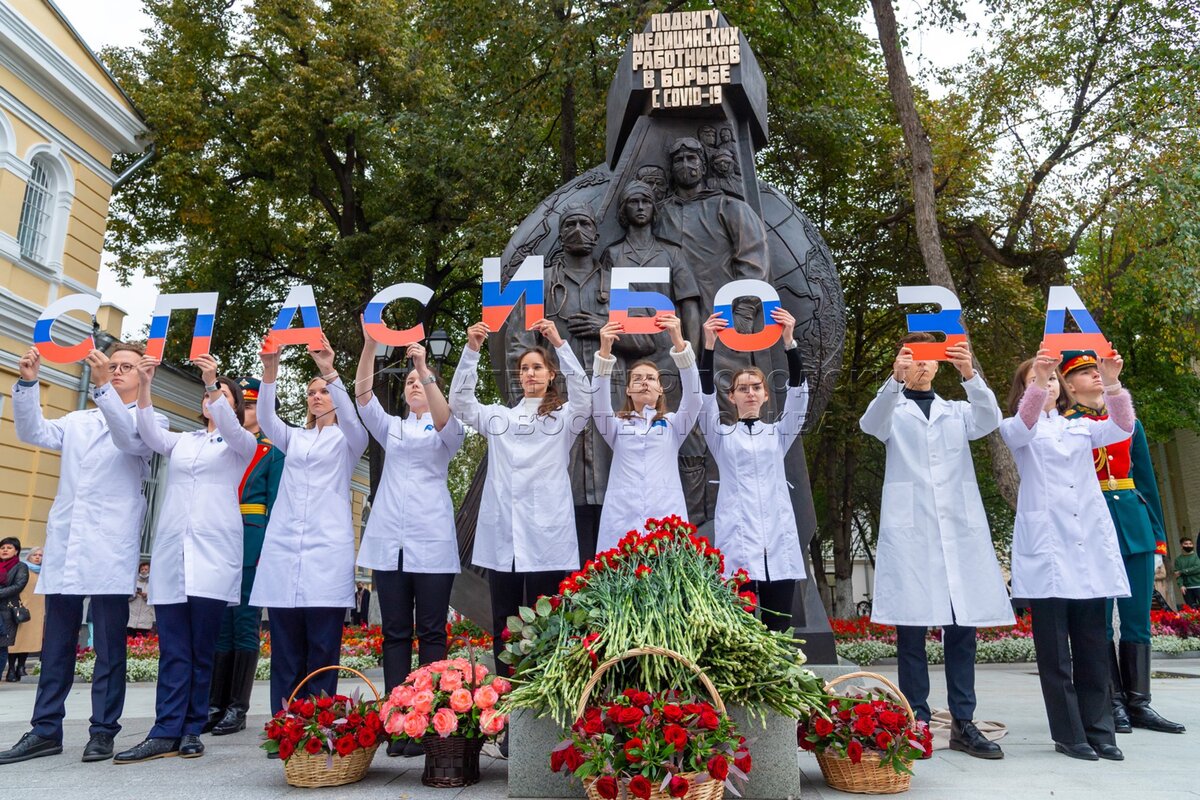 - Описание: Памятник «Подвигу медицинских работников в борьбе с COVID-19», установленный на территории Первого Московского государственного медицинского университета имени Сеченова.