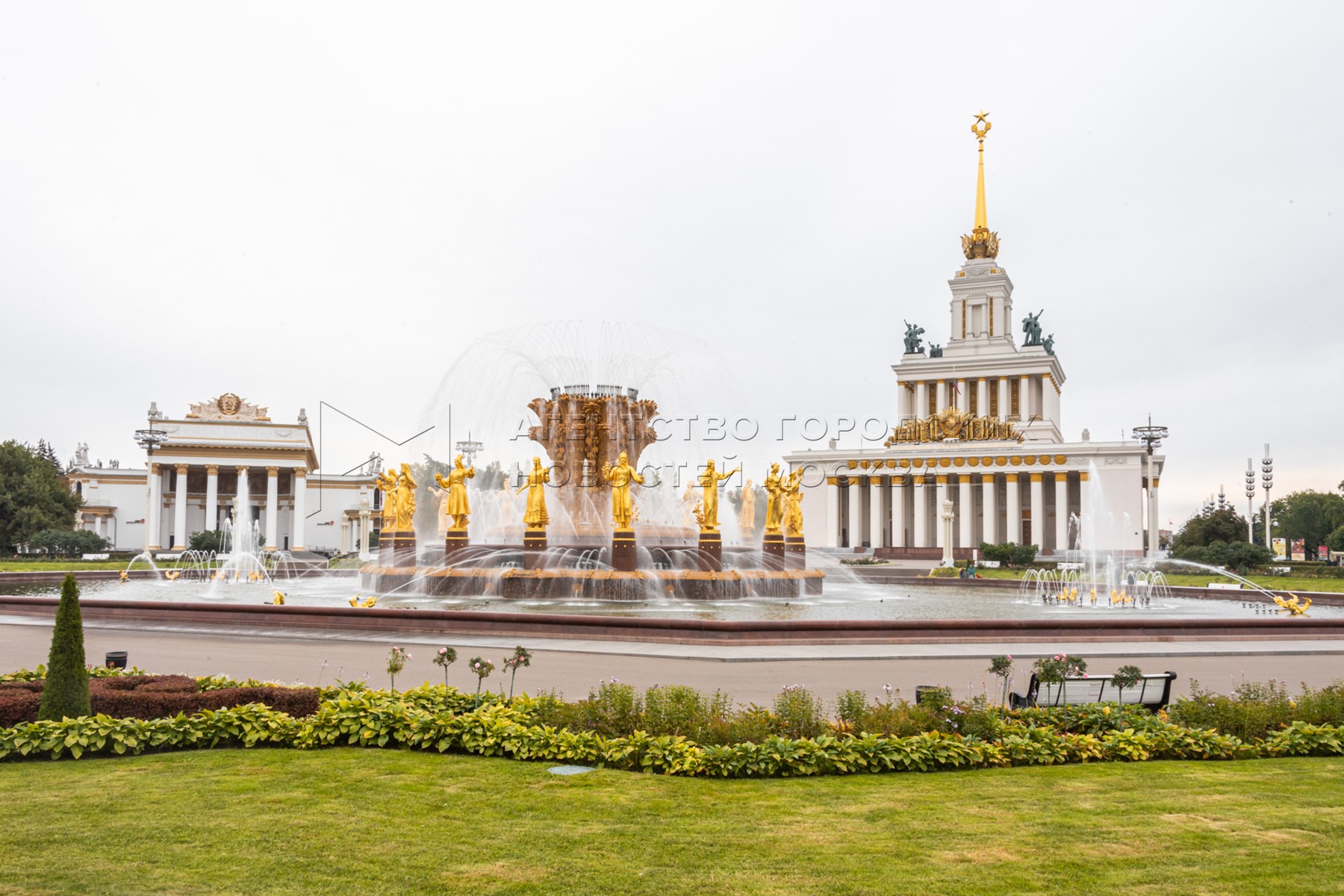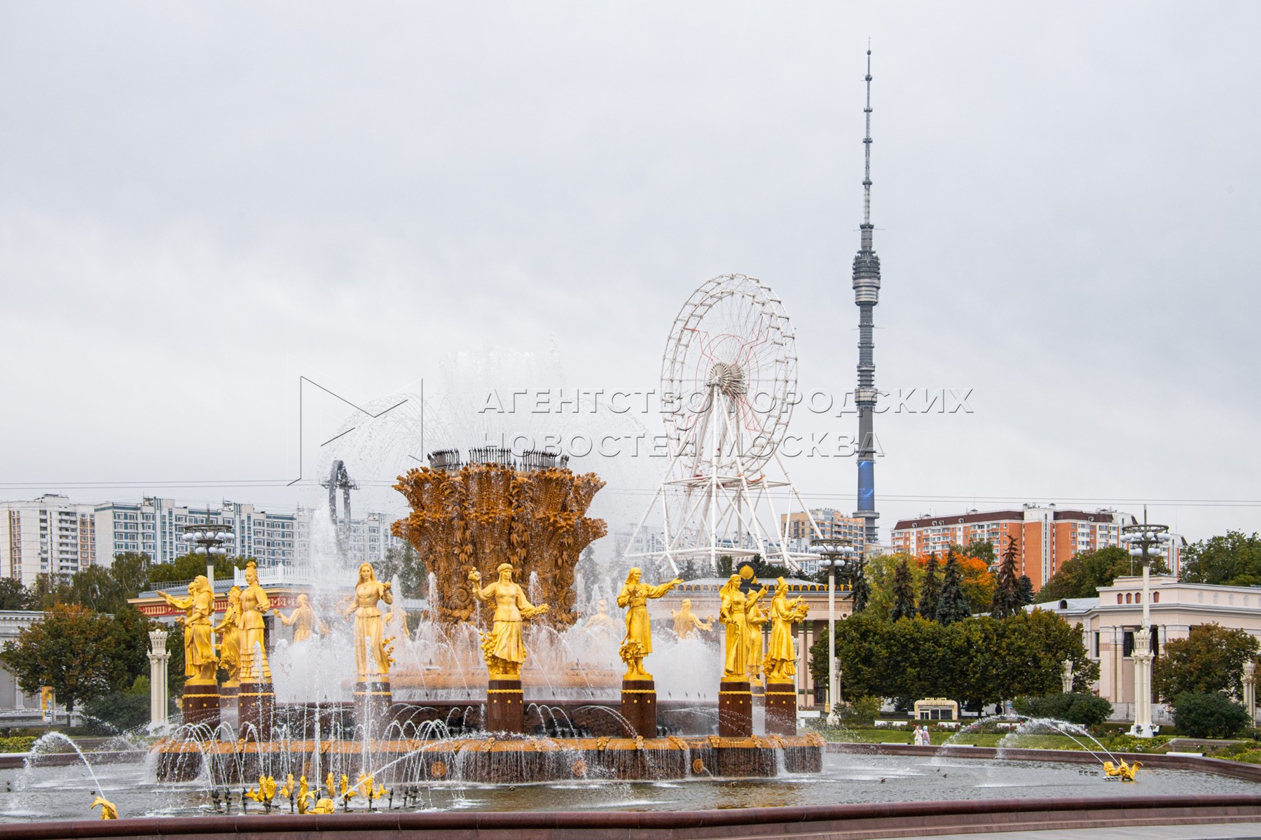 Ход работ по реконструкции ВДНХ. Вид на фонтан «Дружба народов», павильон №71 — ...