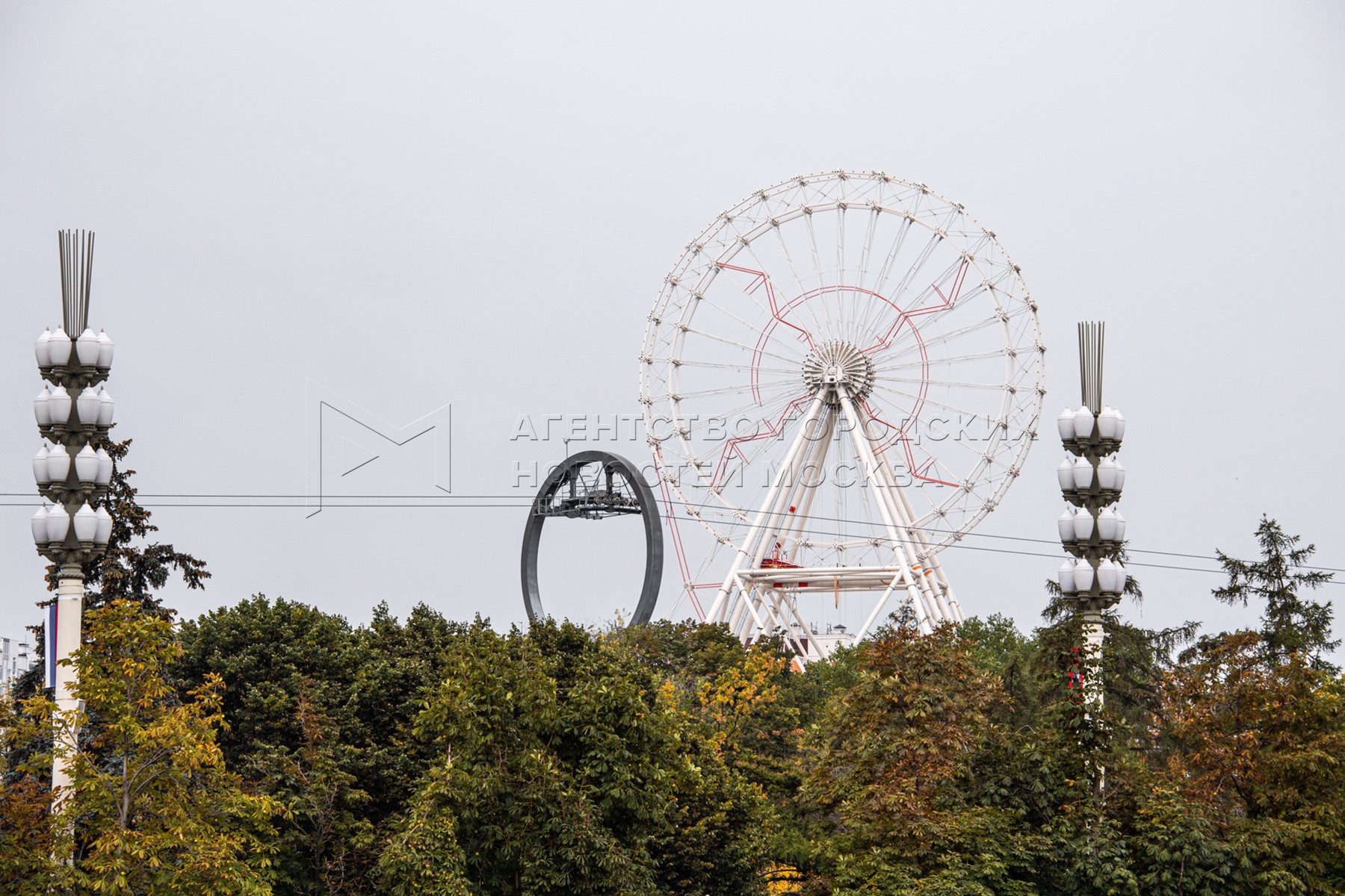 Ход работ по реконструкции ВДНХ. Вид на Останкинскую башню и колесо обозрения. Фо...
