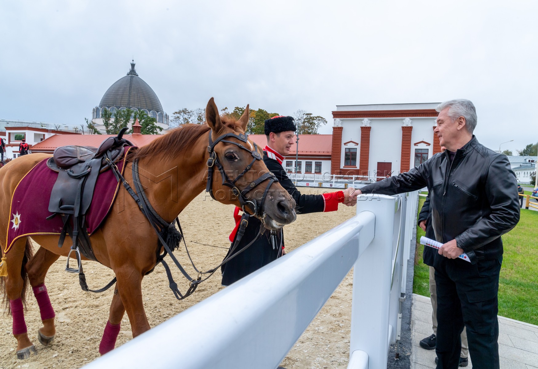 Мэр Москвы Сергей Собянин во время осмотра хода работ по реконструкции ВДНХ. Выводной круг «Центра национальных конных традиций». Фото: Владимир Новиков, пресс-служба мэра и правительства Москвы.