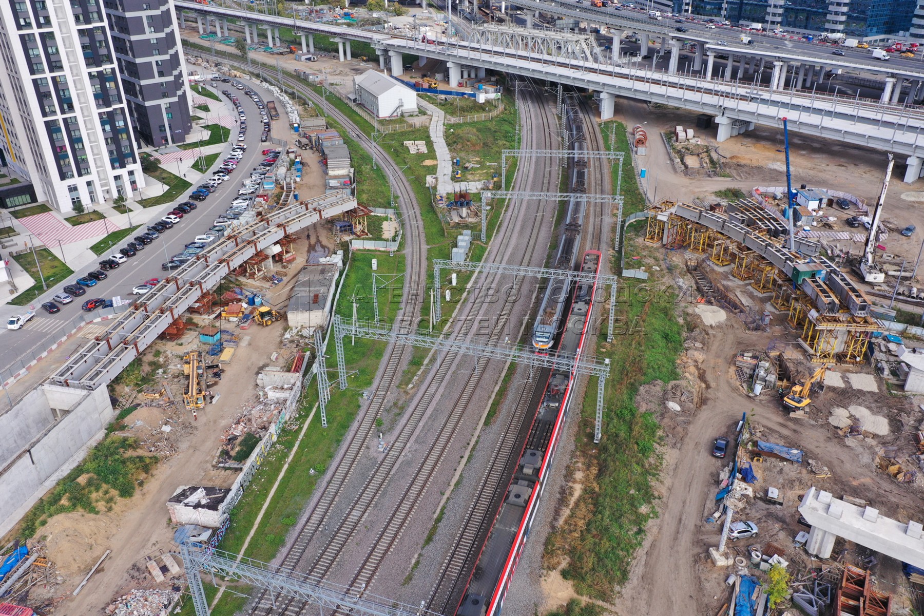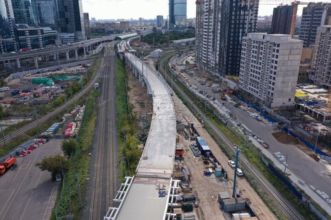 - Заголовок: Вид с квадрокоптера на строительство МЦД-4 и Северного дублера Кутузовского проспекта у «Москва-Сити»