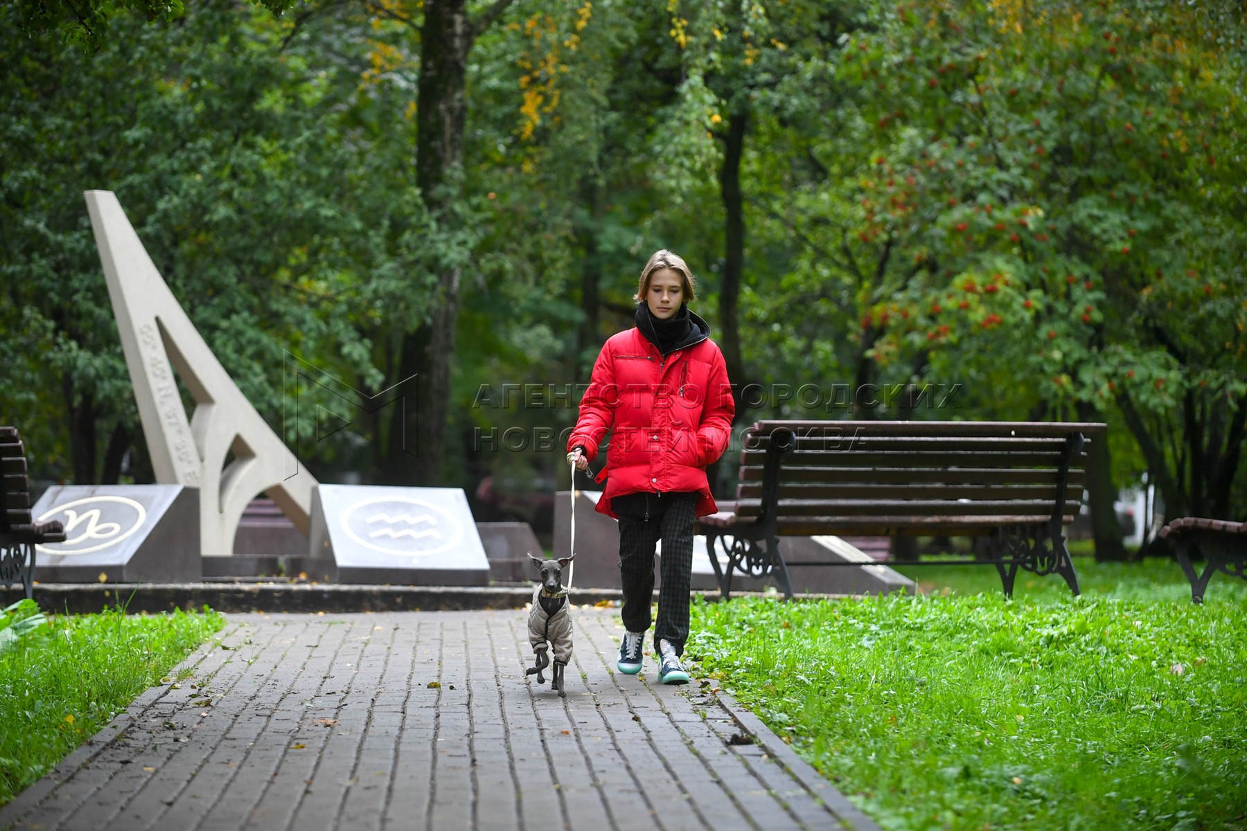Осень в Москве. Горожане возле Большого Новодевичьего пруда.