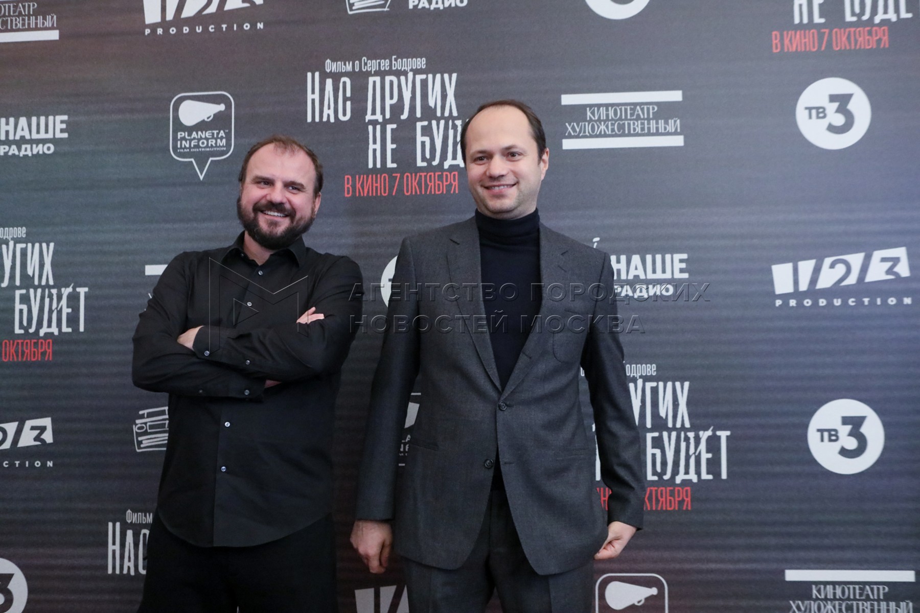 - Описание: Продюсеры Валерий Федорович (слева) и Евгений Никишов перед премьерным показом документального фильма об актере и режиссере Сергее Бодрове-младшем «Нас других не будет» в Большом зале кинотеатра «Художественный».