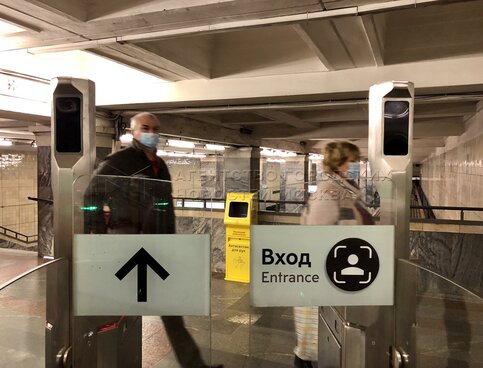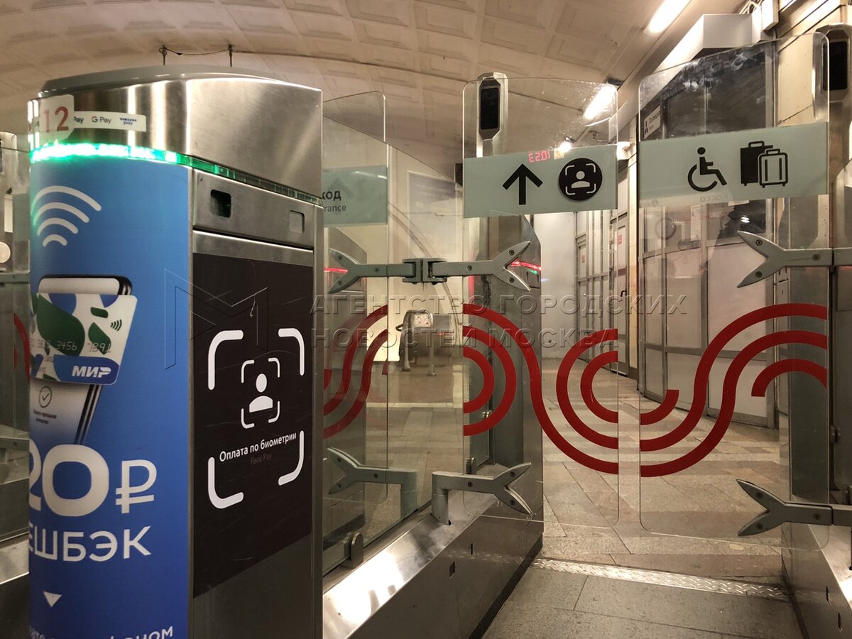 • Заголовок: Указатели у турникетов в московском метро о возможности оплатить проезд с помощью системы Face Pay