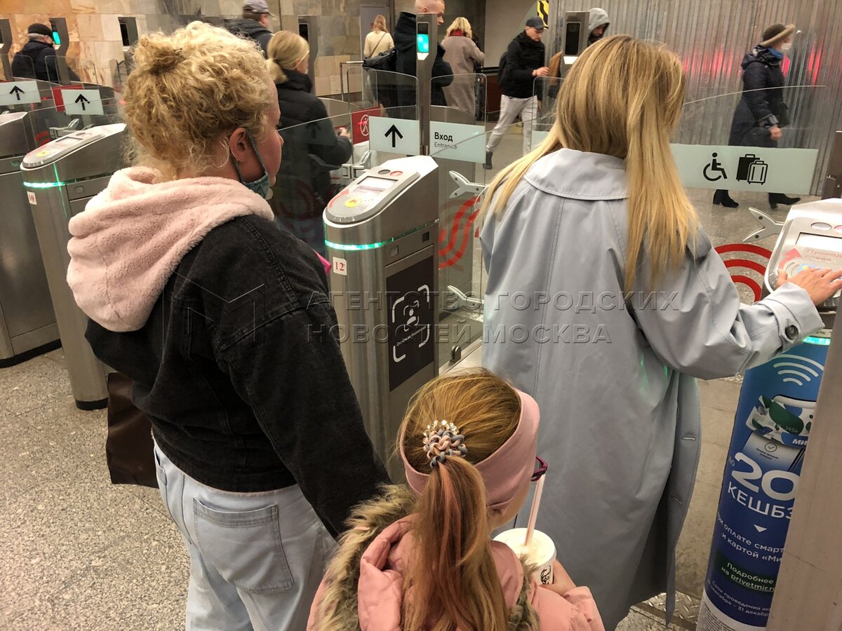 Указатели у турникетов в московском метро о возможности оплатить проезд с помощью...
