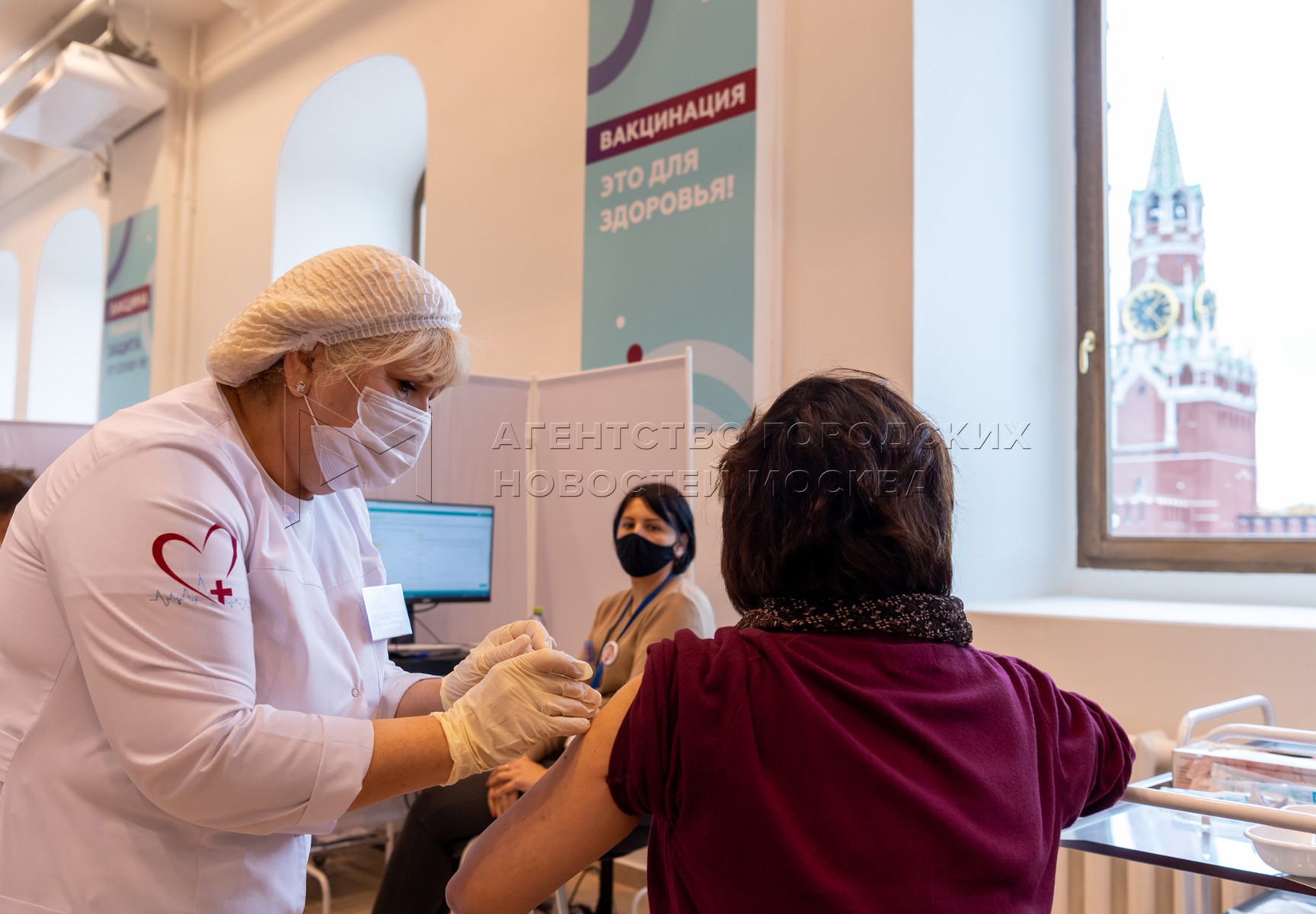 • Описание: Мэр Москвы Сергей Собянин осмотрел работу центра вакцинации от COVID-19, который был недавно вновь открыт в ГУМе, а также пункта экспресс-тестирования на антиген возбудителя новой коронавирусной инфекции. Фото: Владимир Новиков, пресс-служба мэра и правительства столицы.
