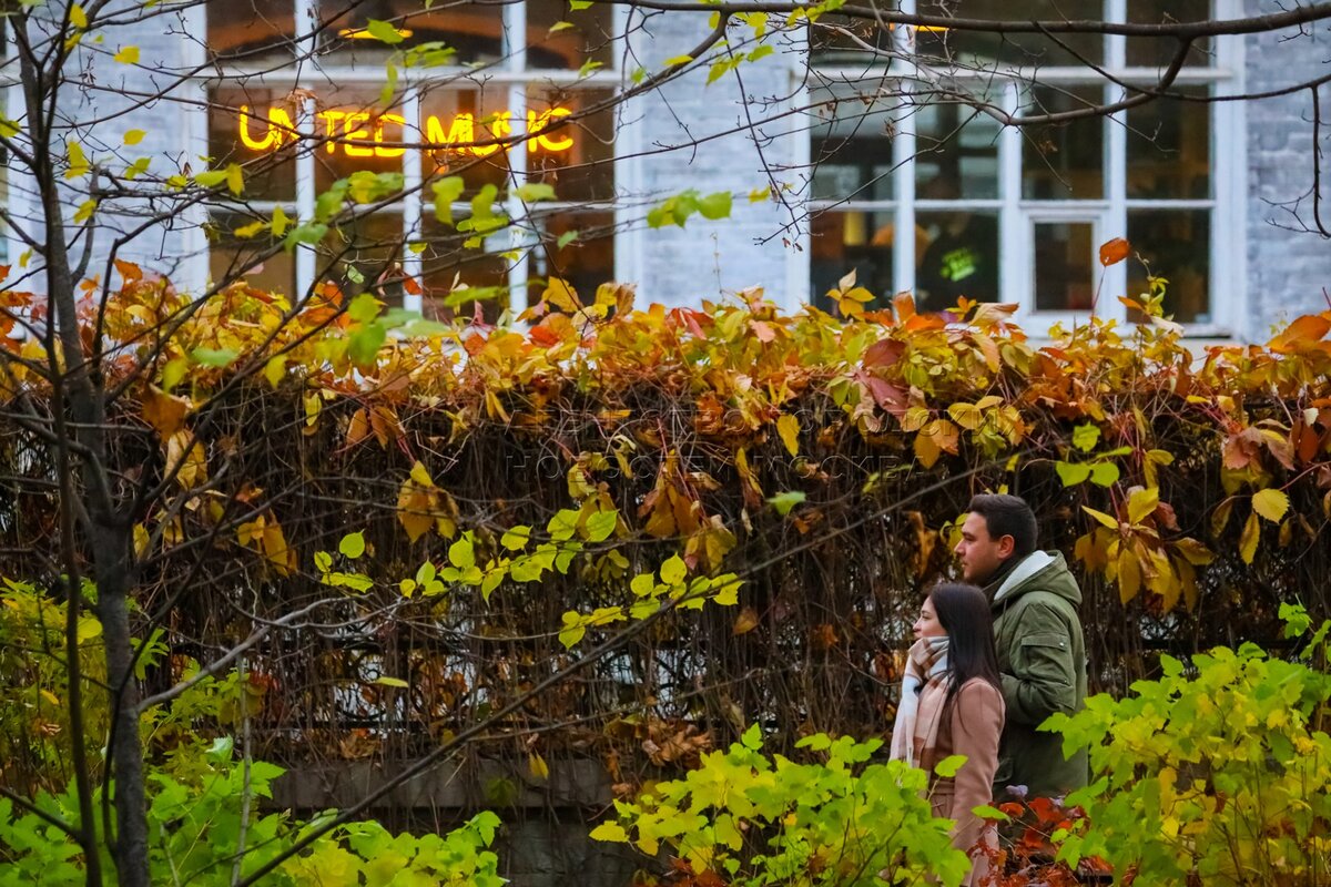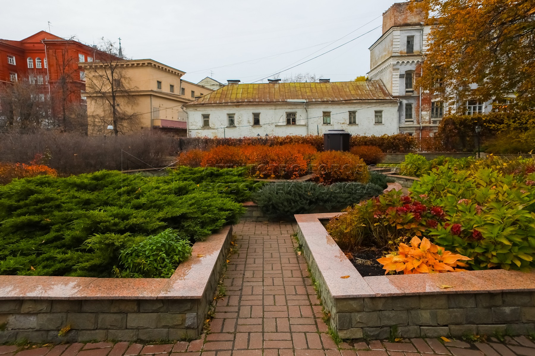 Осень в Морозовском саду в Басманном районе Центрального административного округа Москвы.