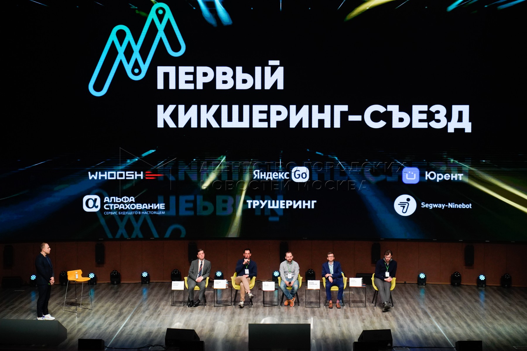 - Описание: Модератор: издатель проекта «Трушеринг» Юрий Николаев, спикеры - руководитель проектов шеринга департамента транспорта Москвы Магомед Колгаев, основатель сервиса аренды электросамокатов Whоosh Дмитрий Чуйко, сооснователь «Юрент» Андрей Азаров, руководитель направления шеринга электросамокатов в Яндекс.Go Леонид Ясиновский и ведущий эксперт Института экономики транспорта и транспортной политики ВШЭ Андрей Борисов (слева направо) во время дискуссии на тему «Микромобильность и альтернативный транспорт» в рамках первого кикшеринг-съезда «Всероссийской конференции кикшеринг-отрасли» на территории «Цифрового делового пространства».