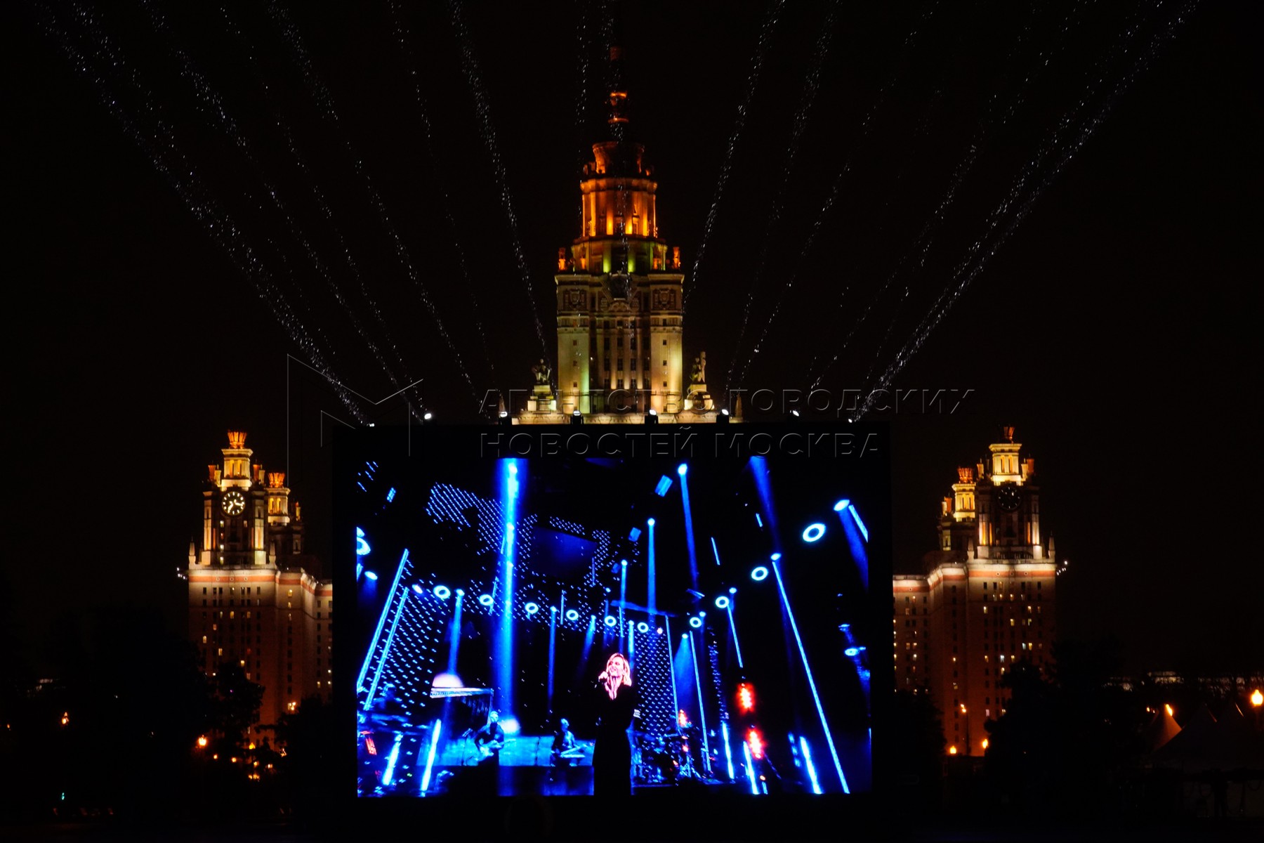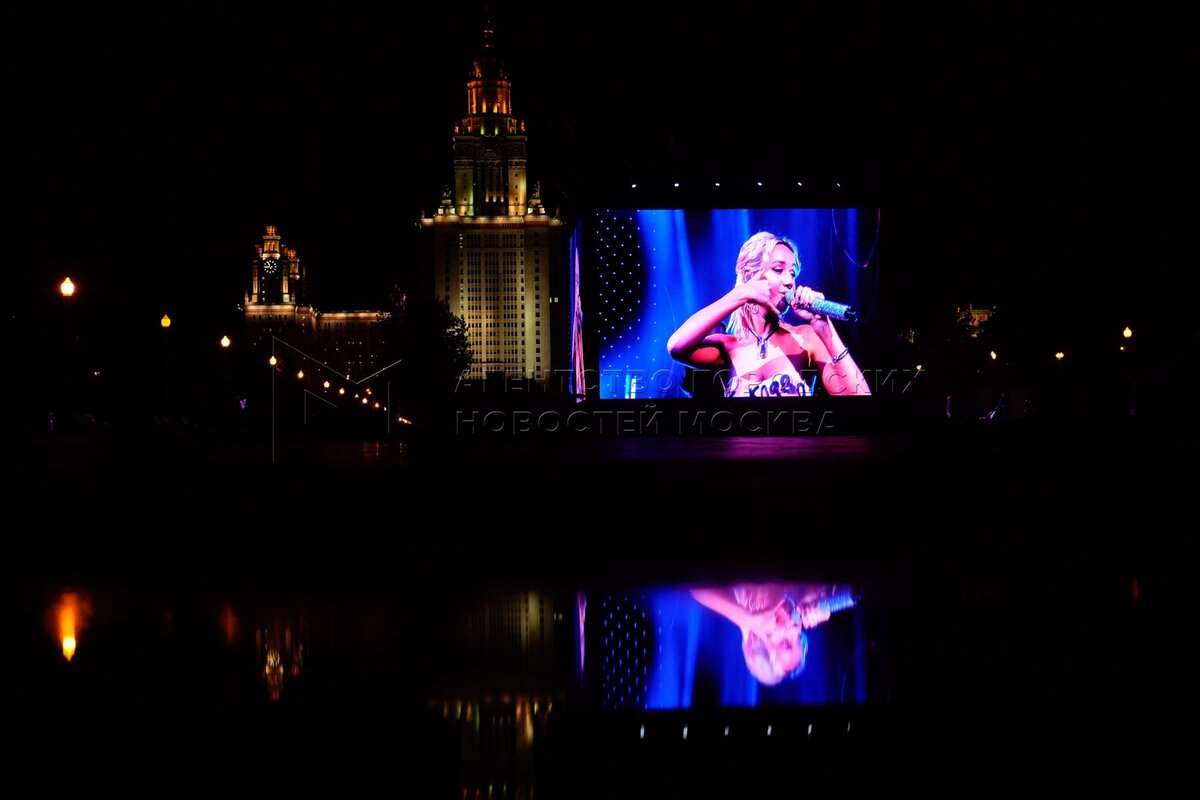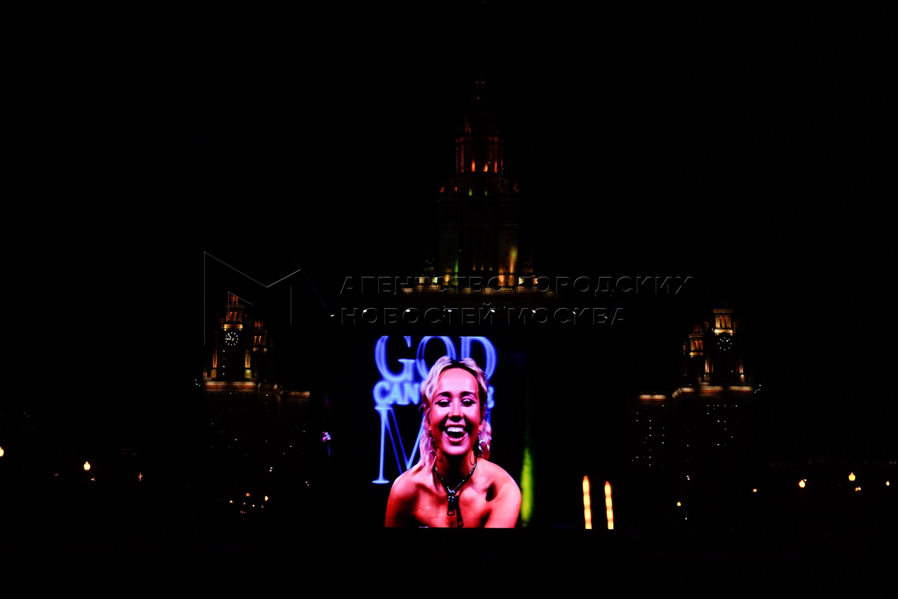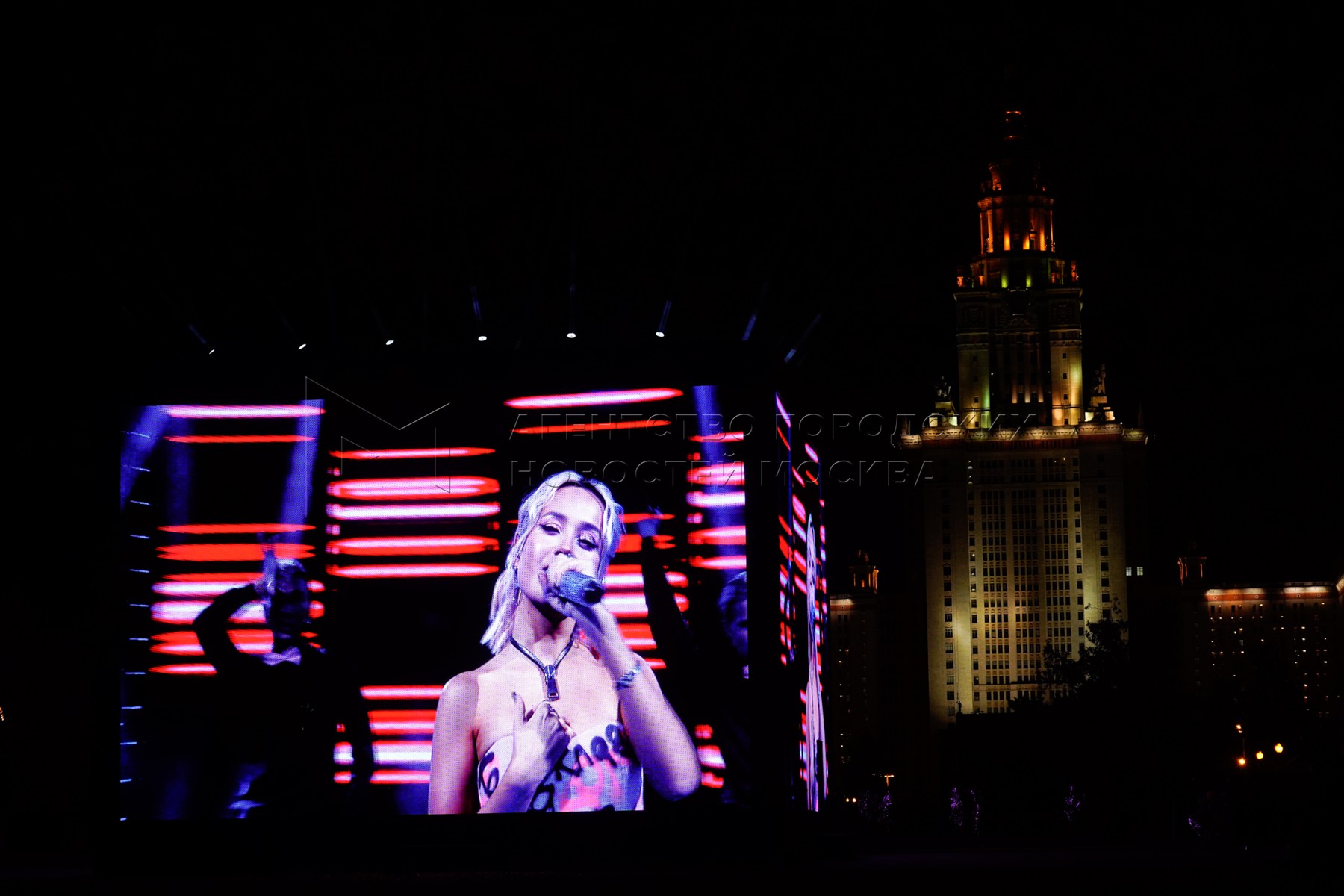 Певица Клава Кока на выступлении городского медиафестиваля «Твоя Москва», который организует телеканал «Москва 24» с 22 по 24 октября 2021 года, на Университетской площади перед главным зданием МГУ имени Ломоносова.