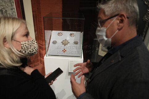 Знак ордена Святого Александра Невского (снизу) на выставке «Святой благоверный к...