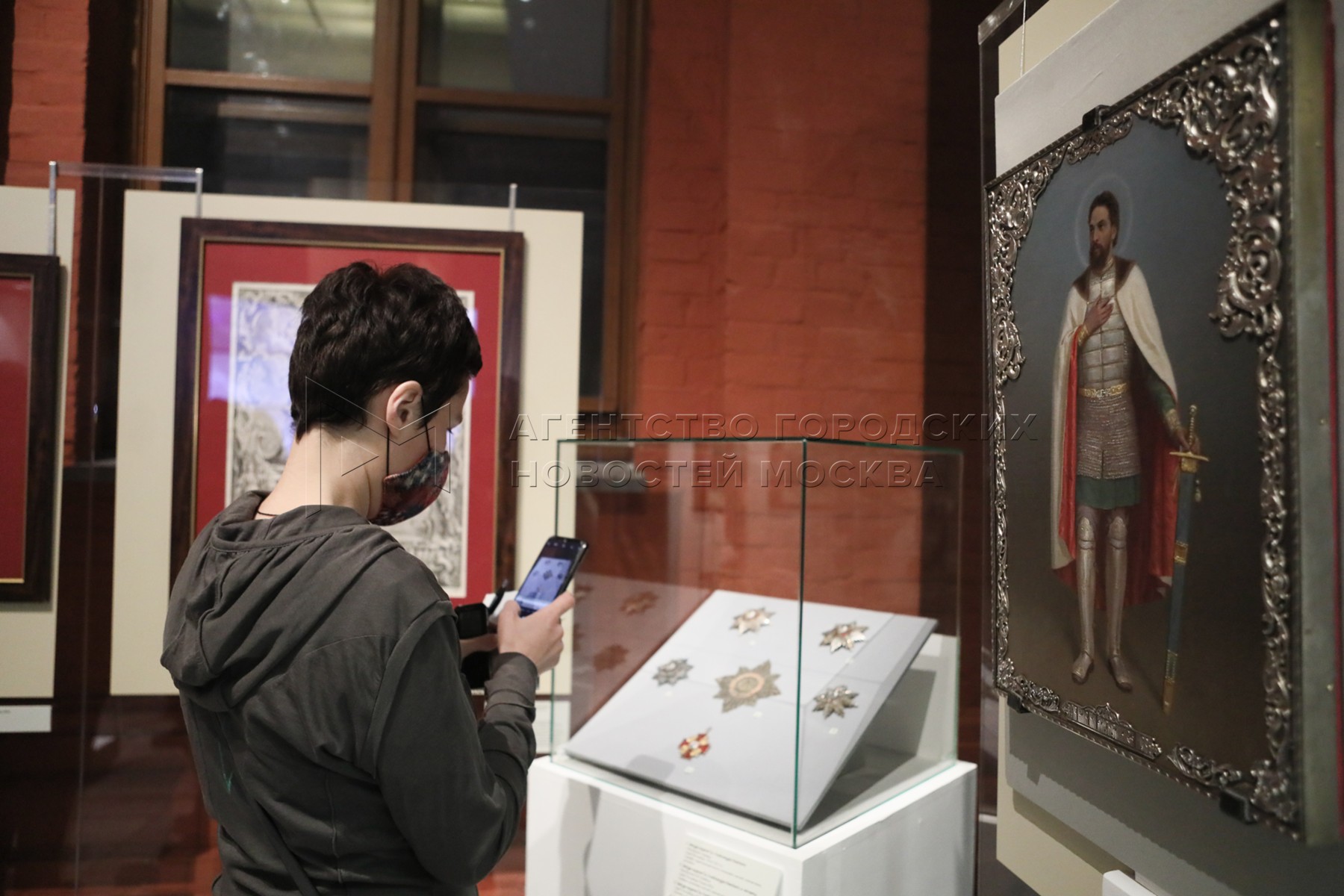 Посетитель на открытии выставки «Святой благоверный князь Александр Невский» в Му...