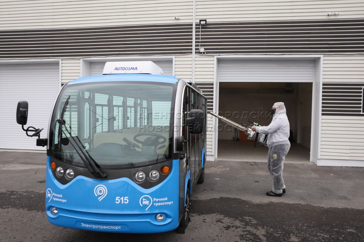 Дезинфекция помещений и электрокаров на Северном речном вокзале.
