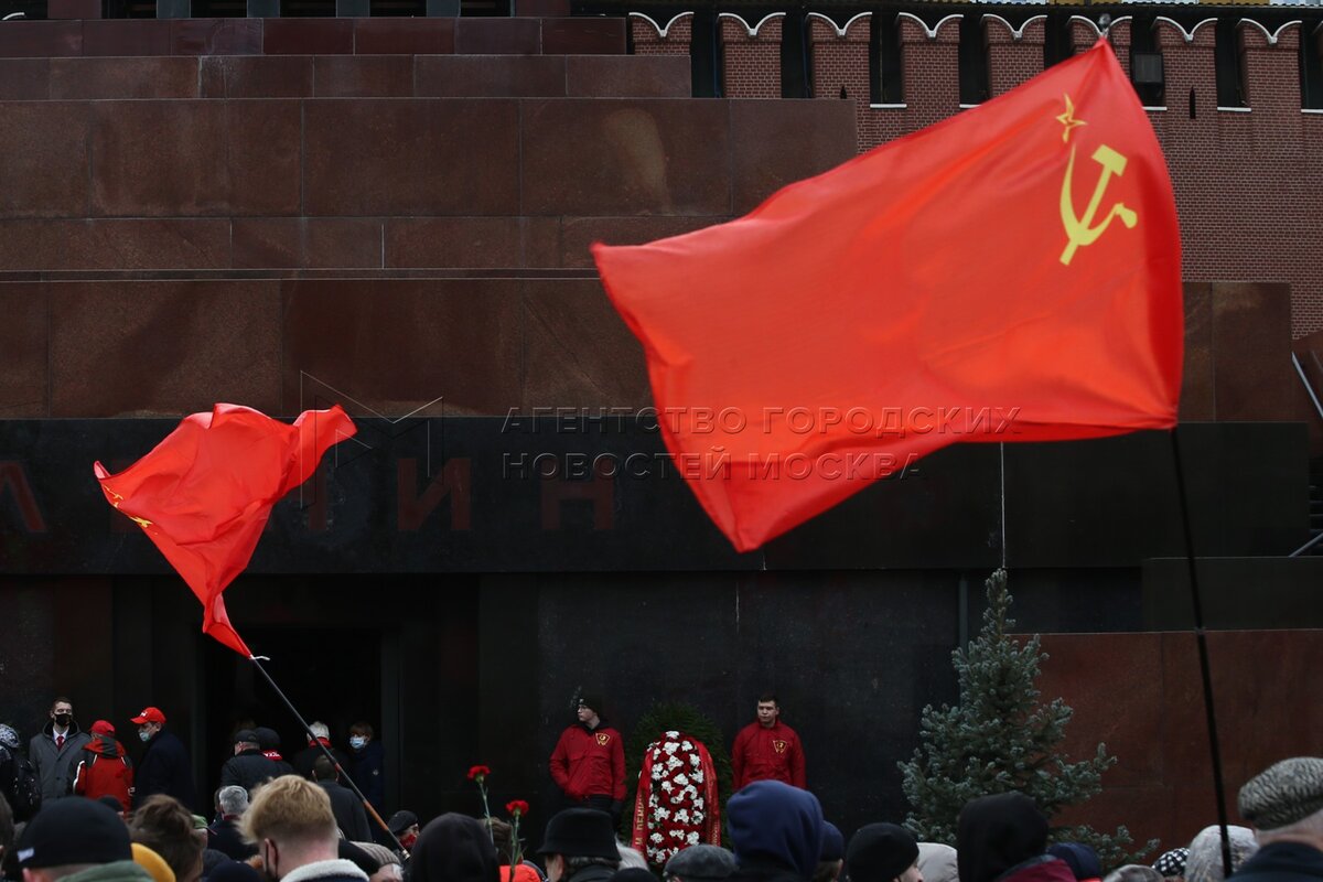 Возложение венков и цветов к Мавзолею Ленина на Красной площади в день 103-й годо...