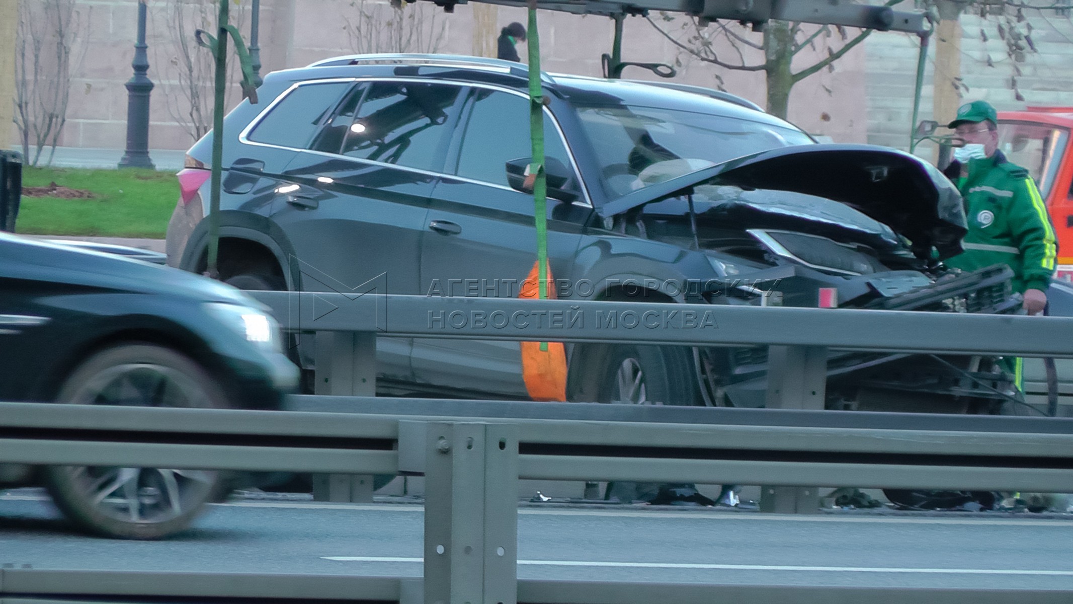 • Заголовок: Последствия ДТП с участием двух иномарок на Ленинградском проспекте, где погиб один человек