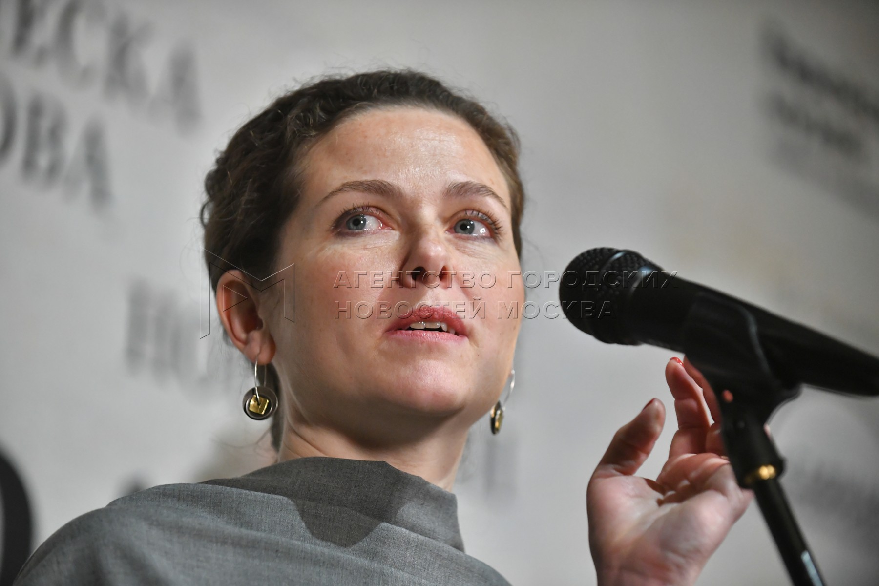 Куратор выставки, искусствовед Мария Гадас во время выставки «Снег на траве» худо...
