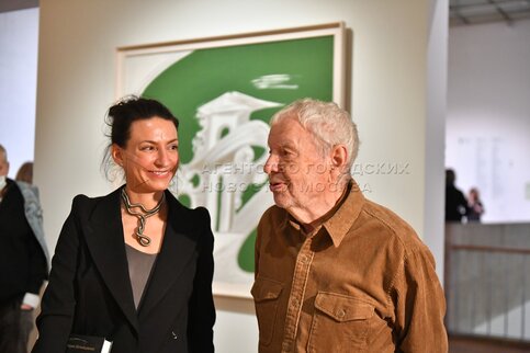 Живописец, график, скульптор и поэт Борис Кочейшвили (слева) во время показа выст...