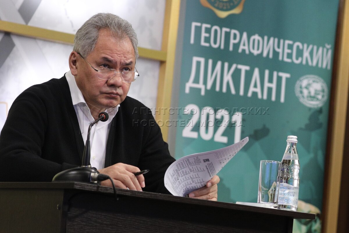 Министр обороны РФ, президент Русского географического общества (РГО) Сергей Шойгу во время международной акции «Географический диктант» в Московской штаб-квартире Русского географического общества (РГО).