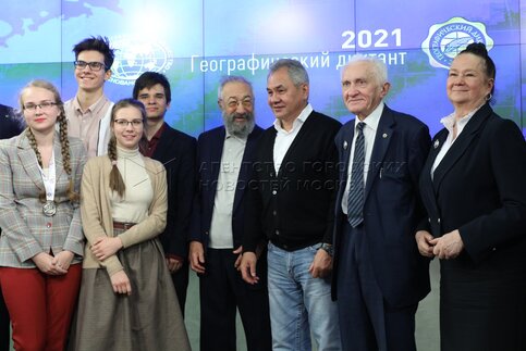 • Описание: Министр обороны РФ, президент Русского географического общества (РГО) Сергей Шойгу во время международной акции «Географический диктант» в Московской штаб-квартире Русского географического общества (РГО).