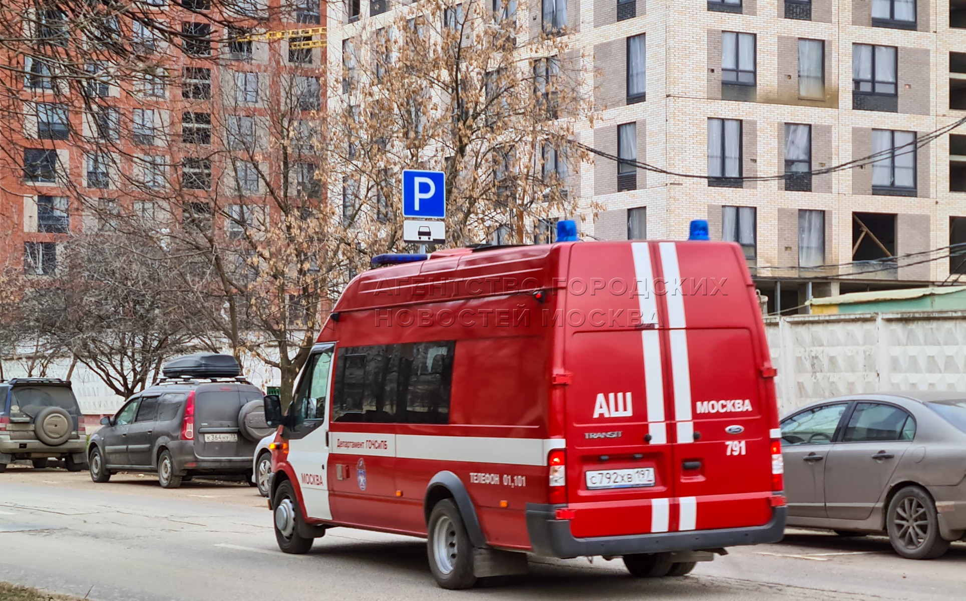 • Заголовок: Оперативные службы на месте гибели двух рабочих при обрушении стены на стройке в Лефортово