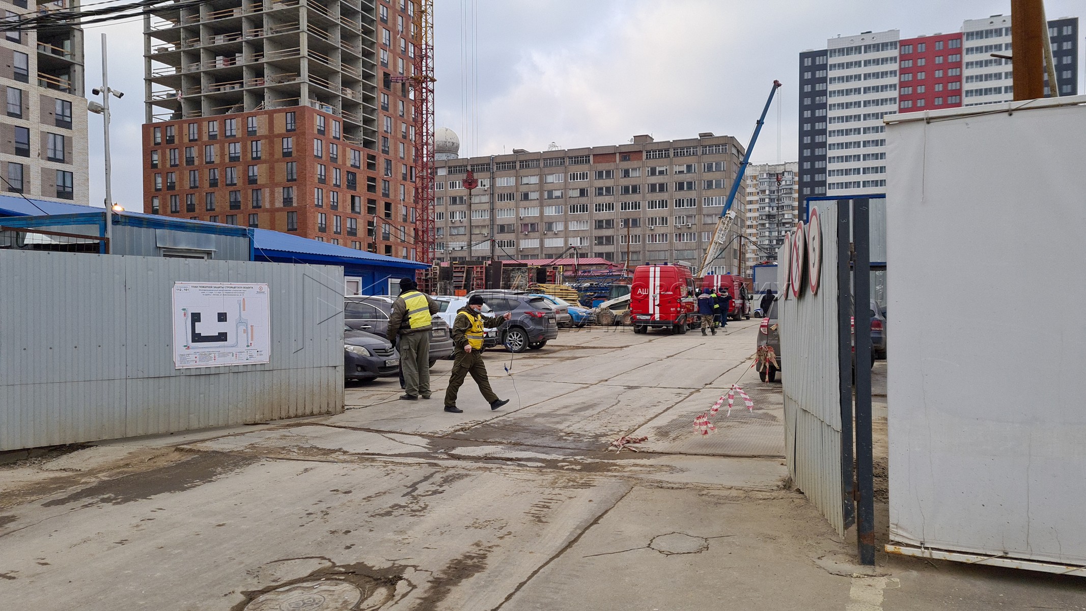 • Заголовок: Оперативные службы на месте гибели двух рабочих при обрушении стены на стройке в Лефортово