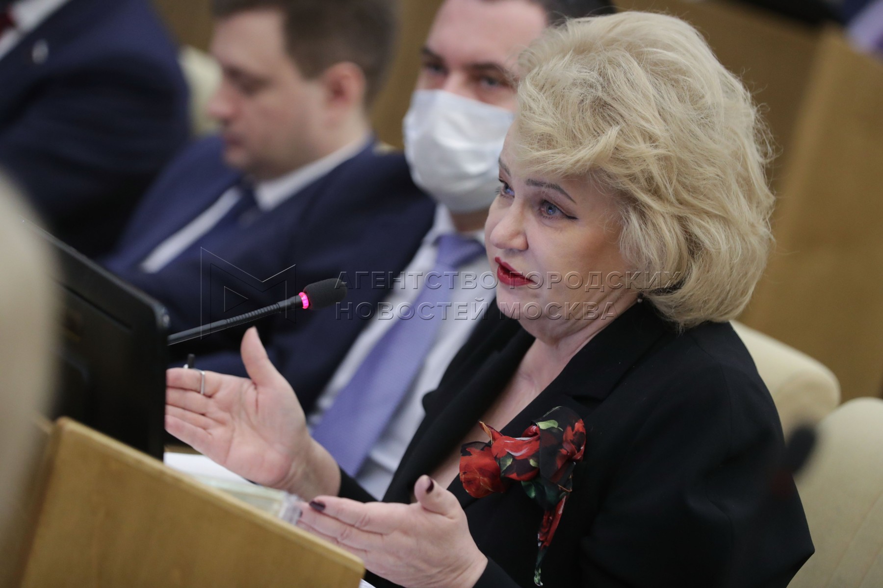 Член Комитета по просвещению Лариса Тутова во время пленарного заседания Госдумы ...