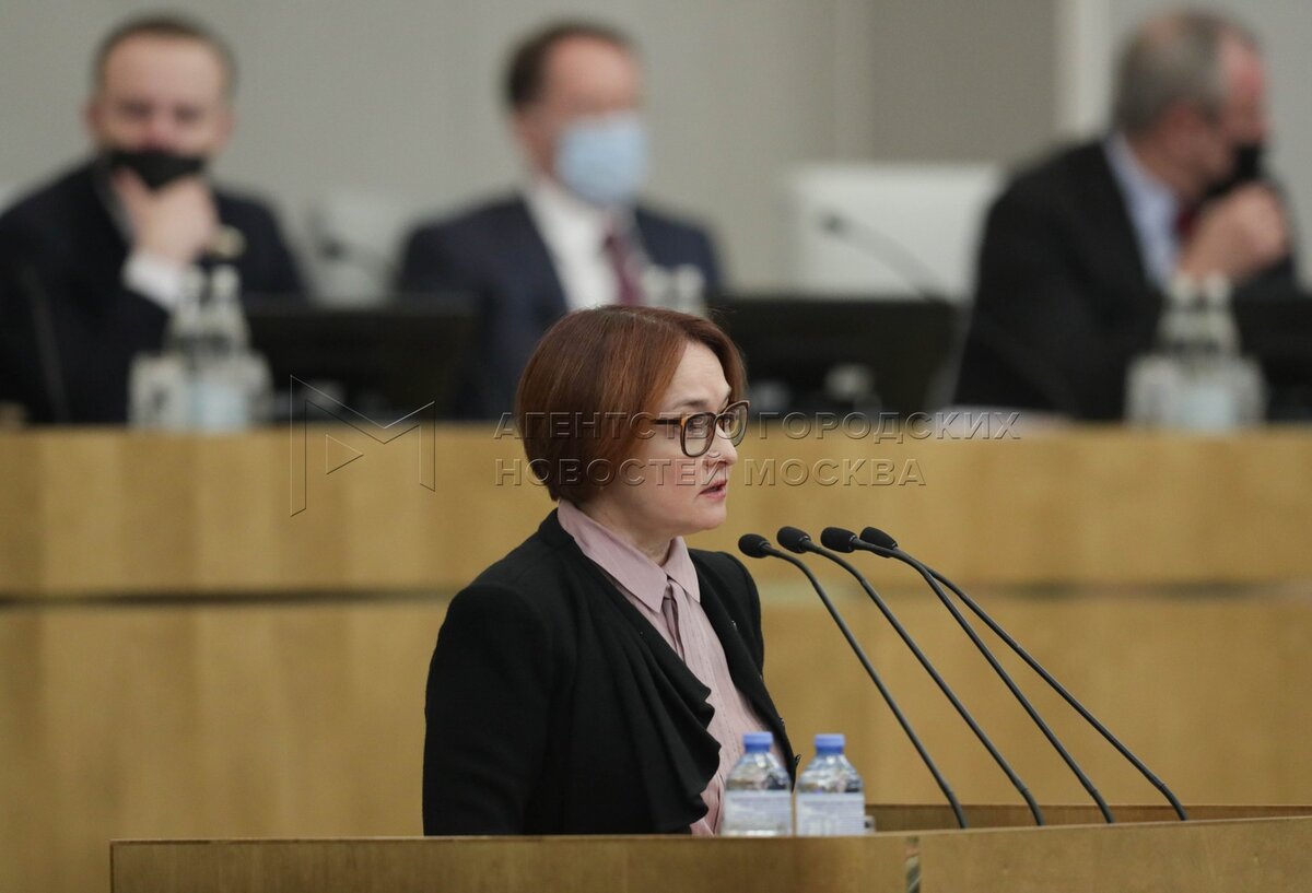 Председатель Центрального банка РФ Эльвира Набиуллина во время пленарного заседан...