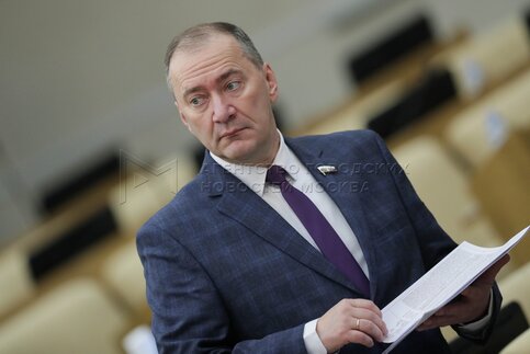 Член Комитета по международным делам Дмитрий Белик во время пленарного заседания ...