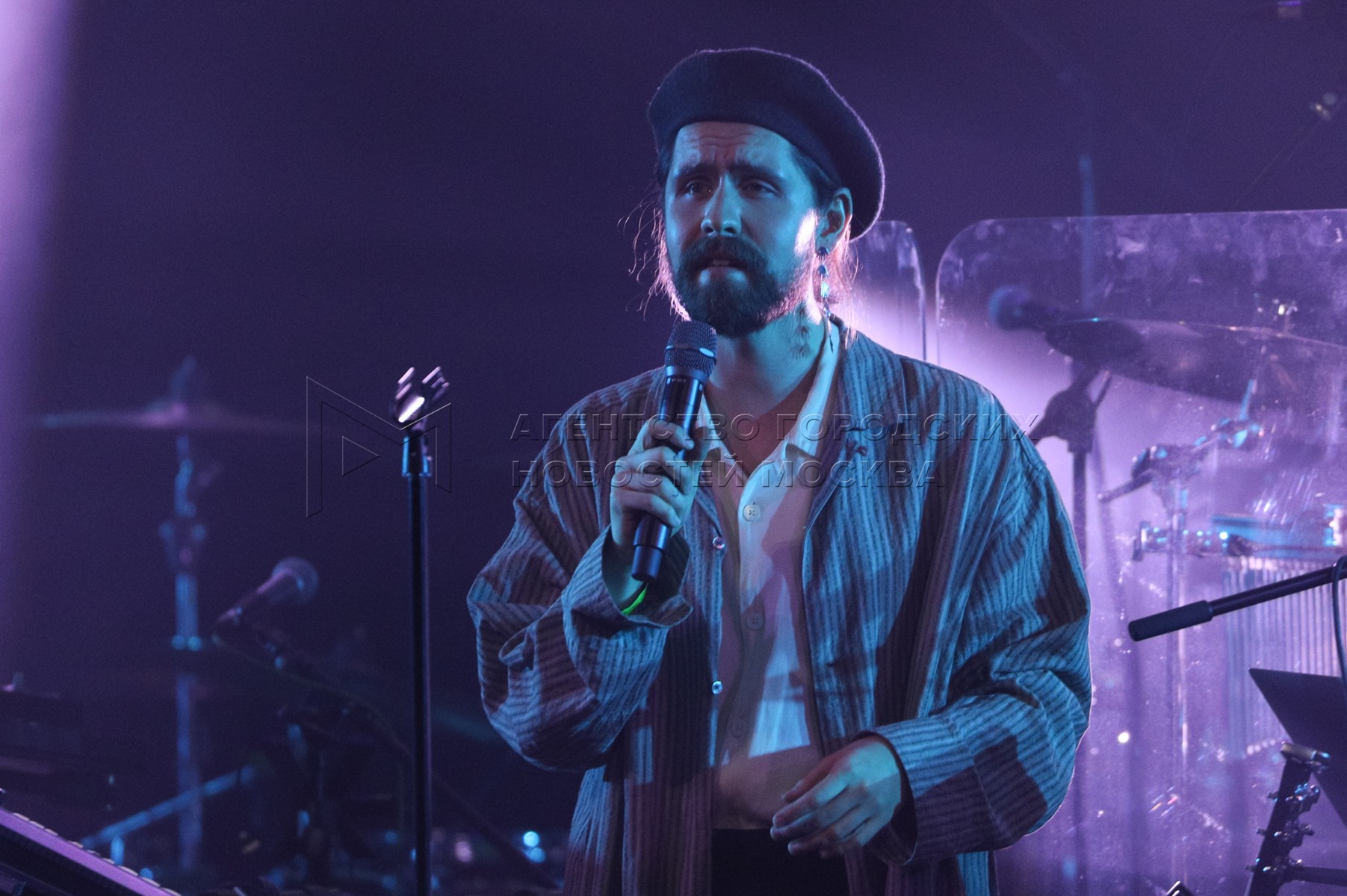 Вокалист группы «Синекдоха Монток» Савва Розанов во время благотворительного конц...