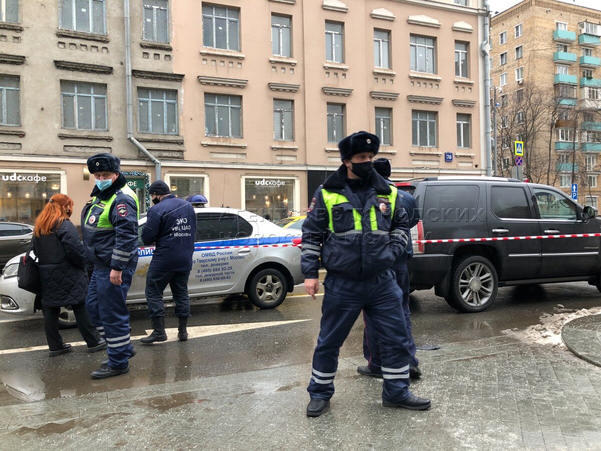 - Заголовок: Сотрудники оперативных служб на месте дорожного конфликта со стрельбой в центре Москвы