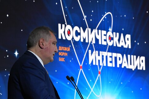 Генеральный директор Госкорпорации «Роскосмос» Дмитрий Рогозин во время делового форума Евразийского экономического союза (ЕАЭС) «Космическая интеграция» в Москве.