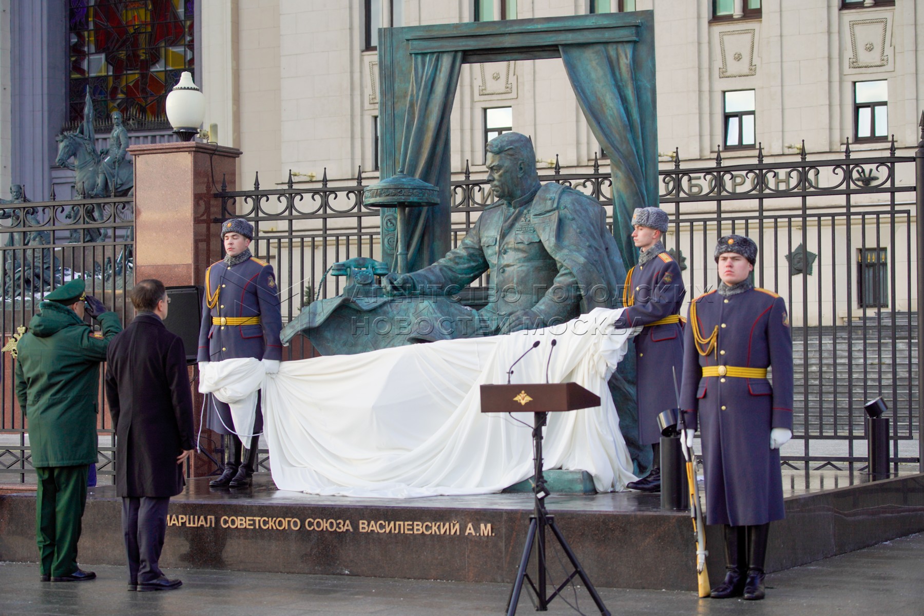 - Заголовок: Открытие памятника маршалу Советского Союза Александру Василевскому около здания министерства обороны РФ