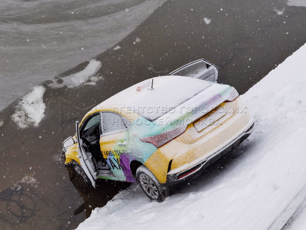 • Заголовок: Работа оперативных служб на месте падения автомобиля такси в Москву-реку на Бережковской набережной