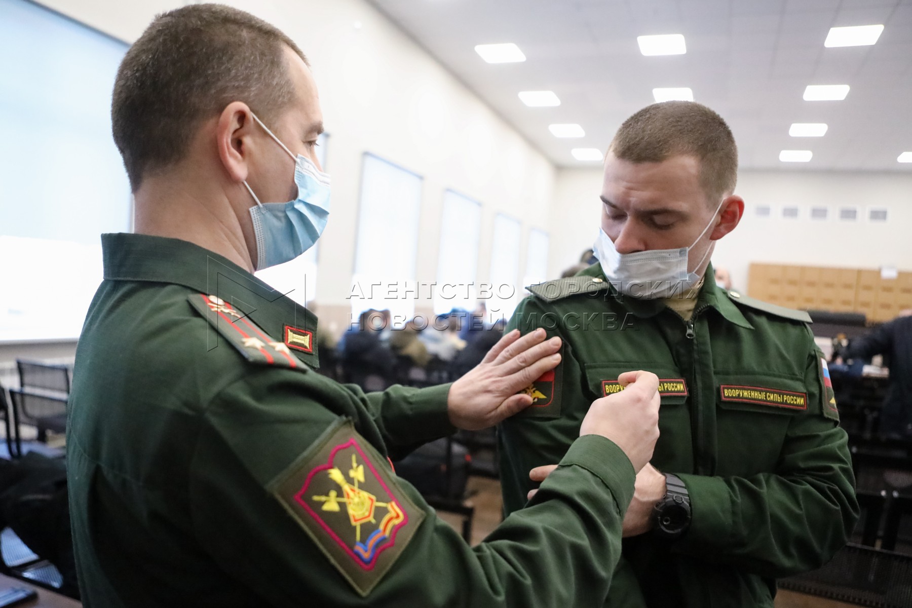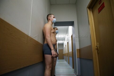Сборный пункт военного комиссариата Москвы, откуда будут отправлены призывники в научные роты Вооруженных сил РФ.