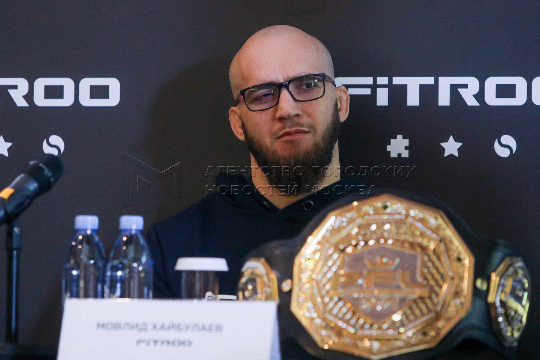 Боец смешанных единоборств Мовлид Хайбулаев во время пресс-конференции бойца смеш...