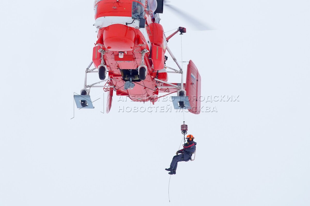 Тренировка сотрудников Московского аварийно-спасательного подразделения на вертолете Ка-32А11ВС