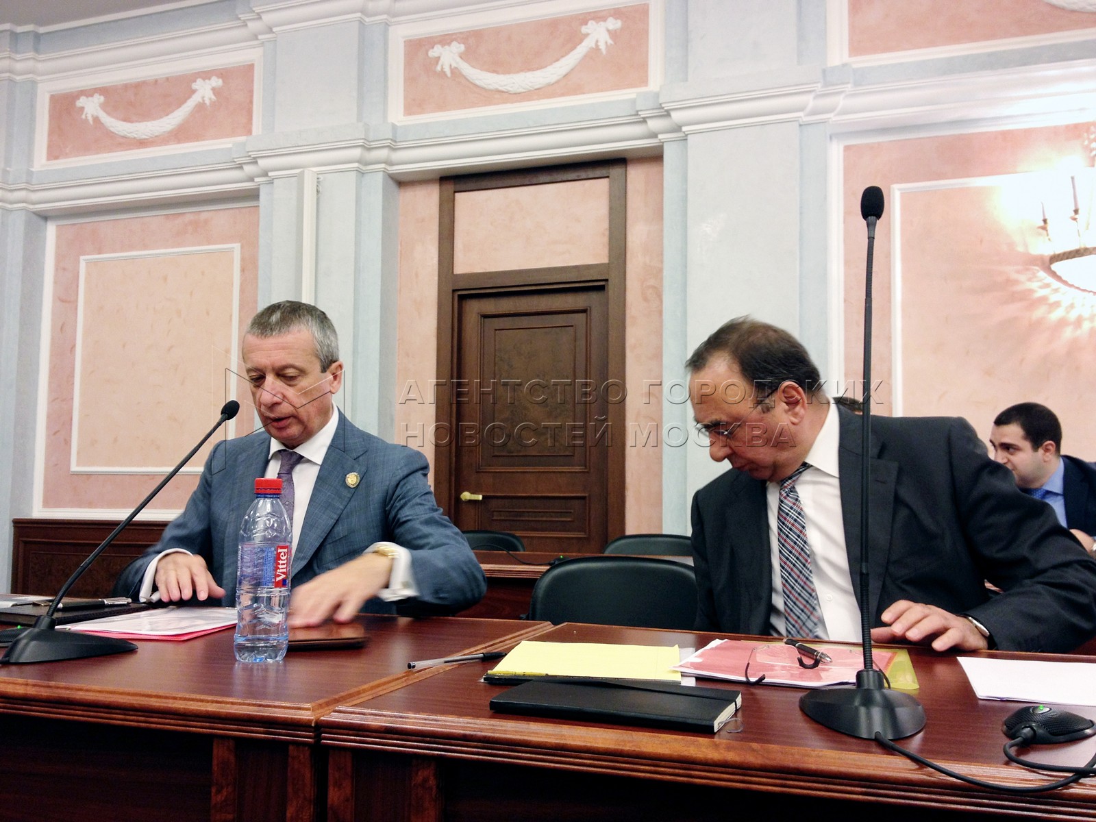 • Описание: Адвокаты осужденных Вадим Клювгант и Владимир Краснов (слева направо) во время рассмотрения надзорной жалобы на приговор экс-главе ЮКОСа Михаилу Ходорковскому и бывшему руководителю МФО «МЕНАТЕП» Платону Лебедеву.