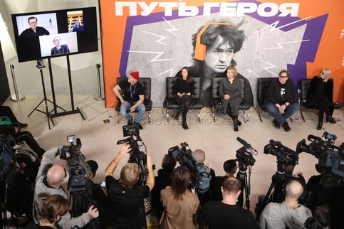 Пресс-конференция и выставка-байопик «Виктор Цой. Путь героя» в Центральном выста...