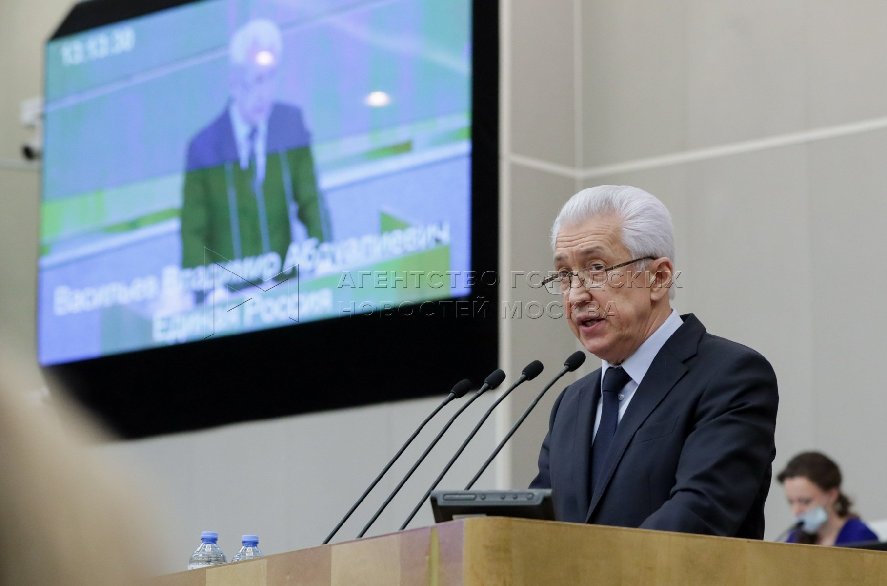 Руководитель фракции «Единая Россия» Владимир Васильев во время первого пленарног...