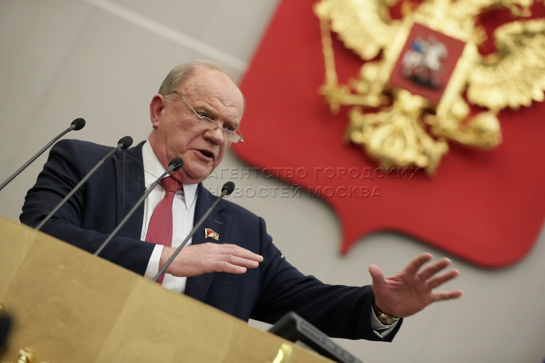 Руководитель фракции КПРФ Геннадий Зюганов во время первого пленарного заседания ...