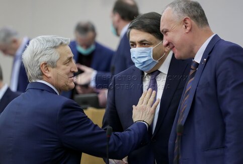 Член Комитета по обороне Виктор Соболев (по центру) во время первого пленарного з...