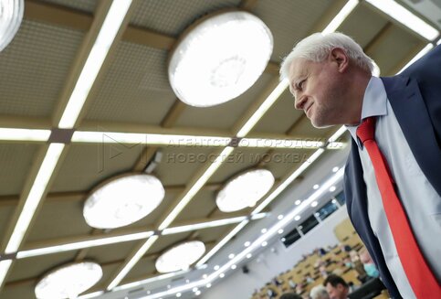 Руководитель фракции «Справедливая Россия — За правду» Сергей Миронов во время пе...