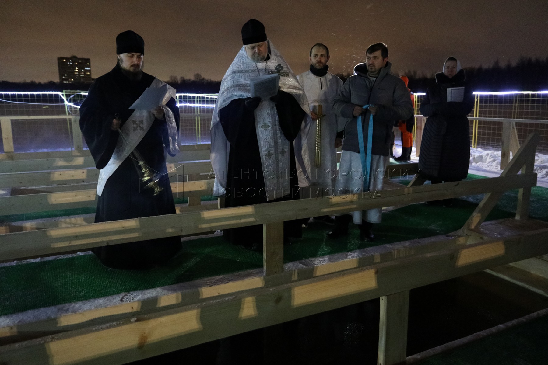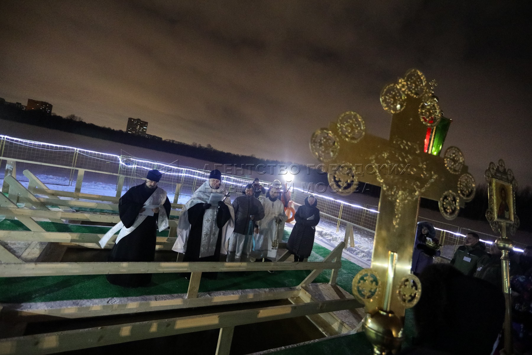 Освящение воды на Нижнем Майском пруду на востоке Москвы.