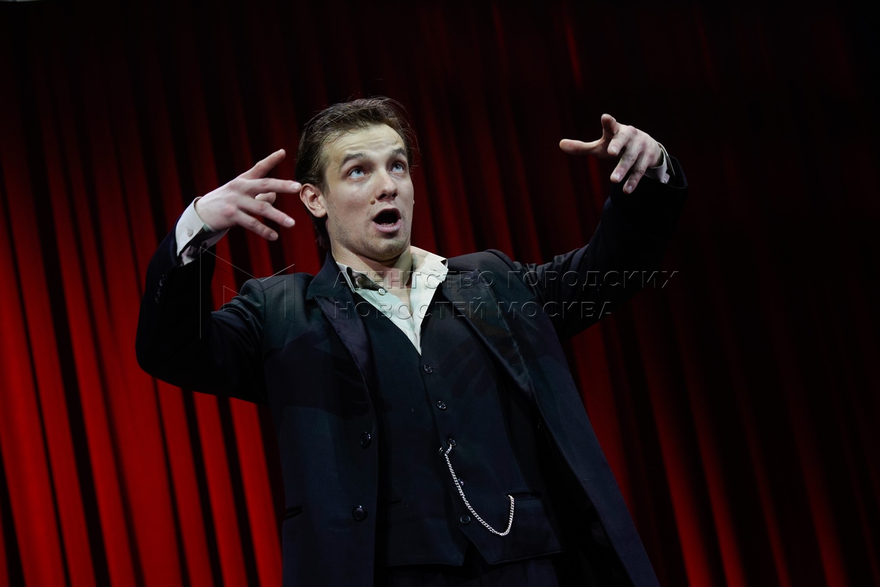 Актер Семен Алешин в роли Егора Глумова во время показа премьерного спектакля «На...