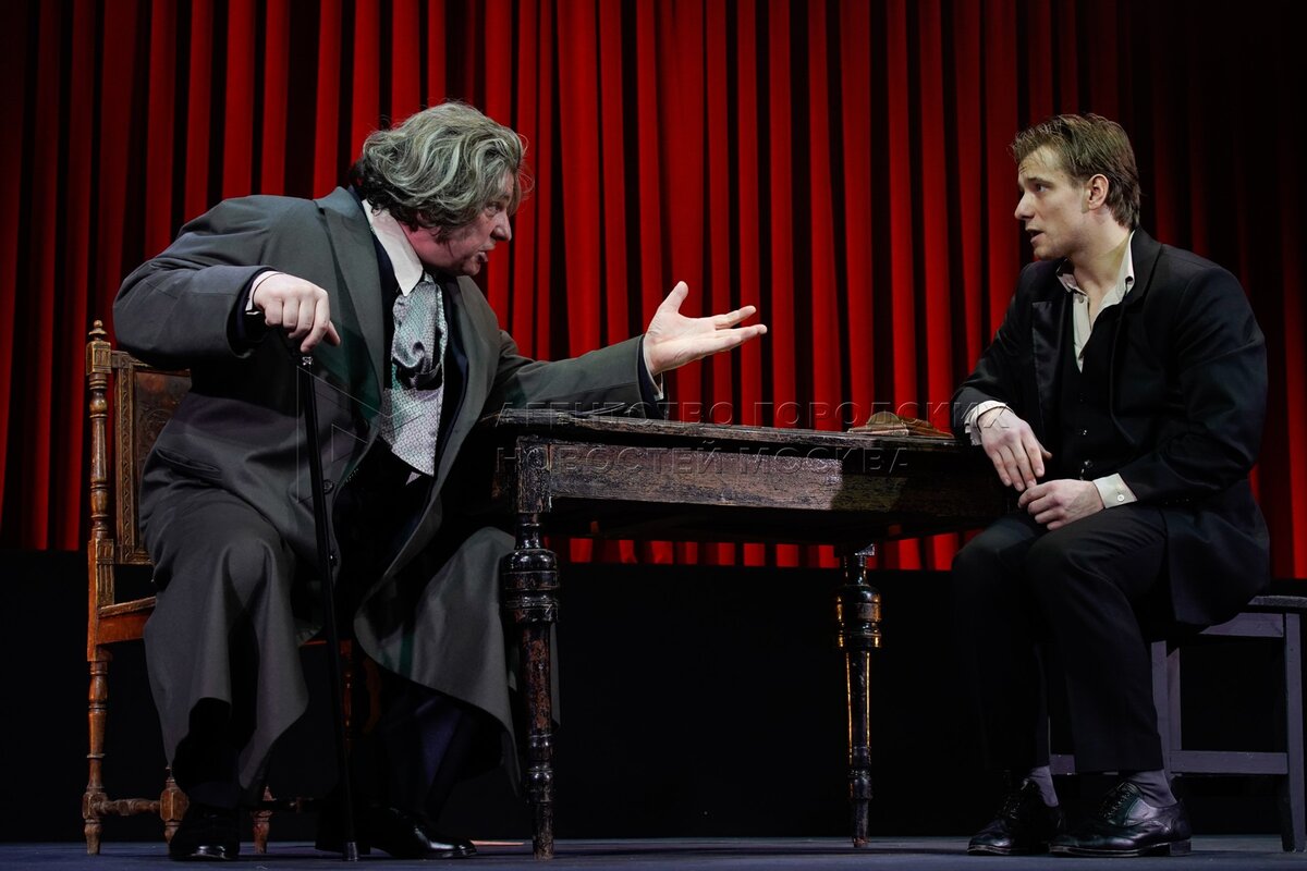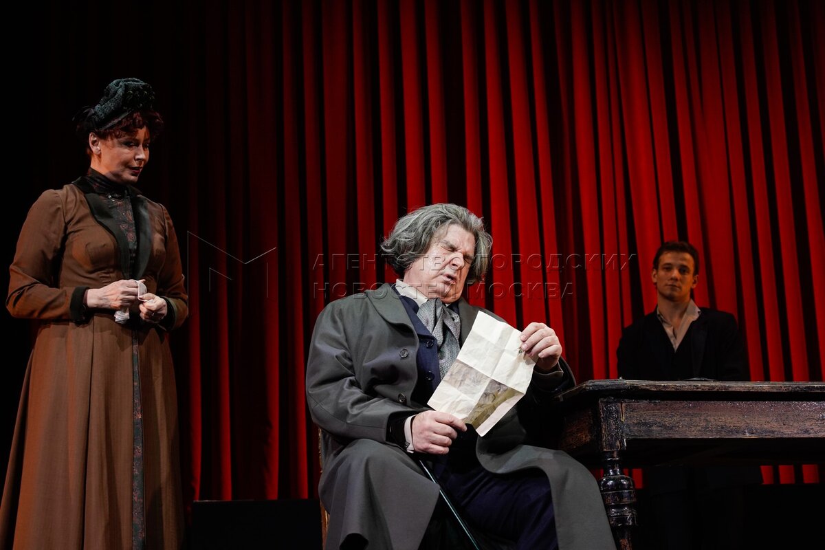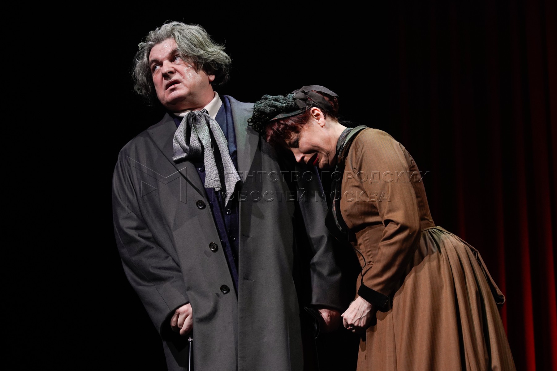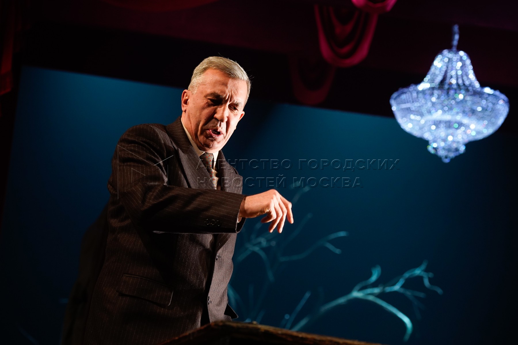 Актер Александр Андриенко в роли Крутицкого во время показа премьерного спектакля...