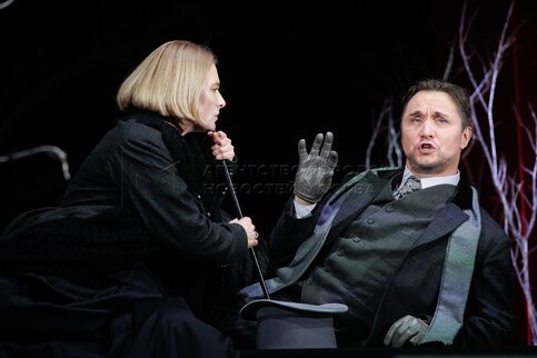 Актеры Валерия Забегаева в роли Глафиры Глумовой и Семен Алешин в роли Егора Глум...