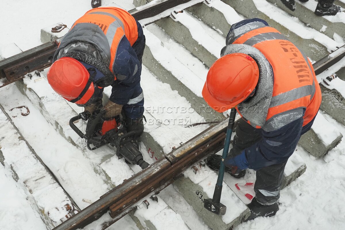 Укладка путей на эстакаде соединительной ветки четвертого маршрута Московских центральных диаметров (МЦД-4) в столице.